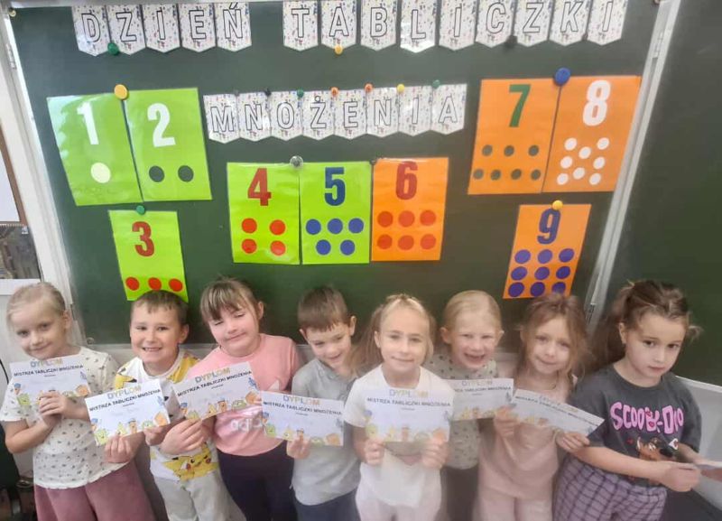 radości, współpracy i nauki poprzez zabawę. Dzieci świetnie się bawiły, a jednocześnie utrwalały ważne umiejętności matematyczne. Dzień Tabliczki Mnożenia udowodnił, że nauka może być przyjemna i pełna uśmiechu!