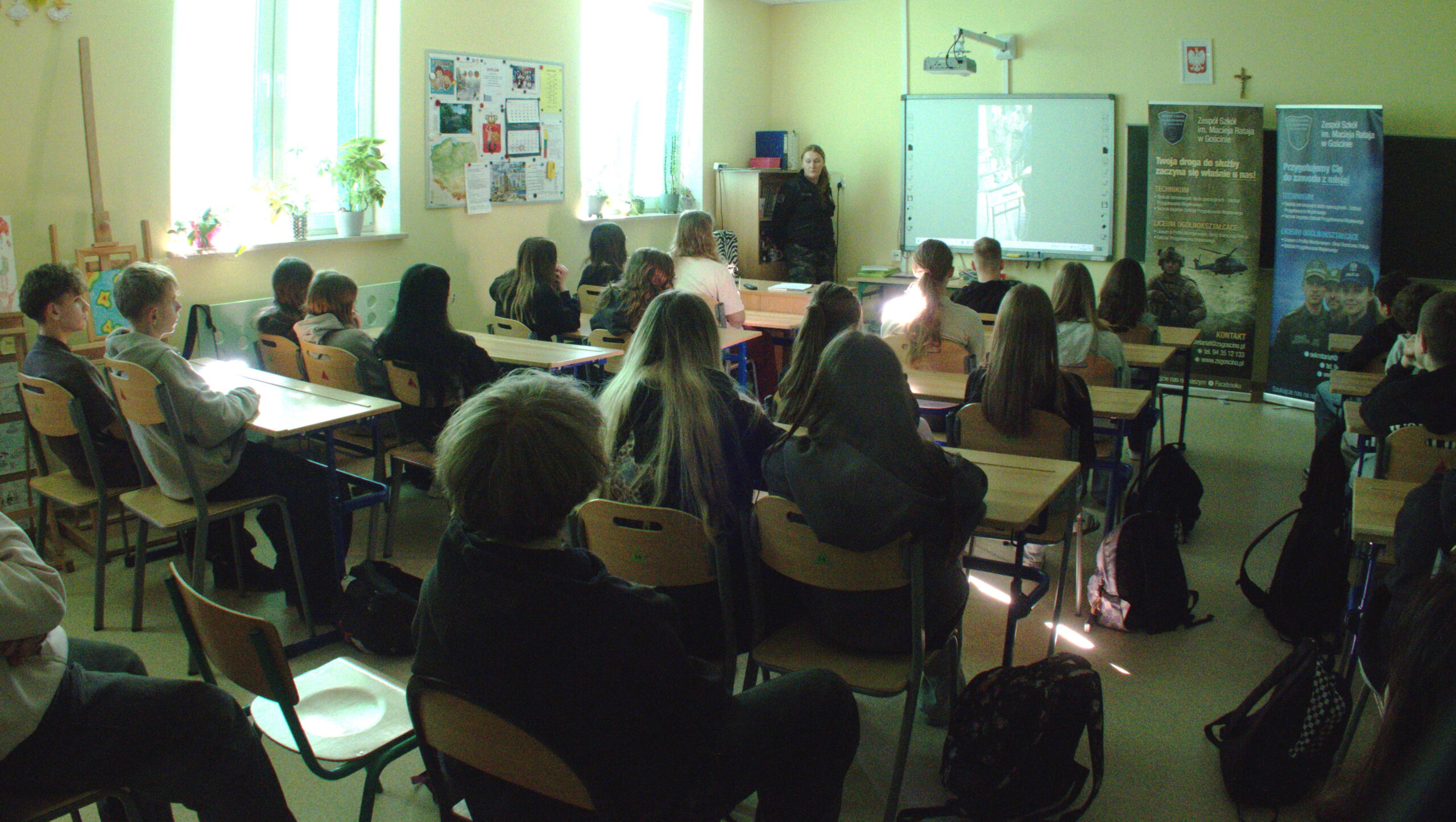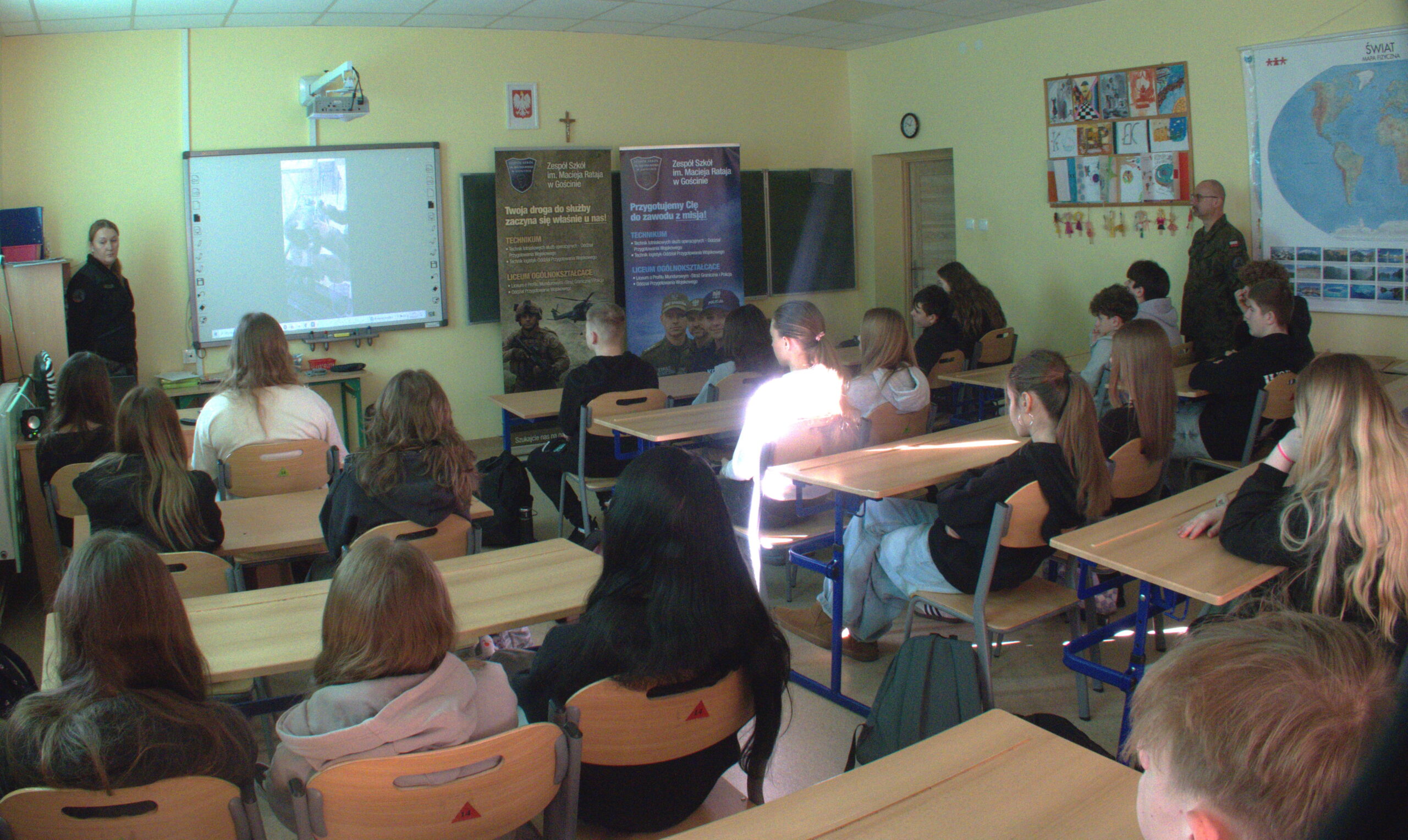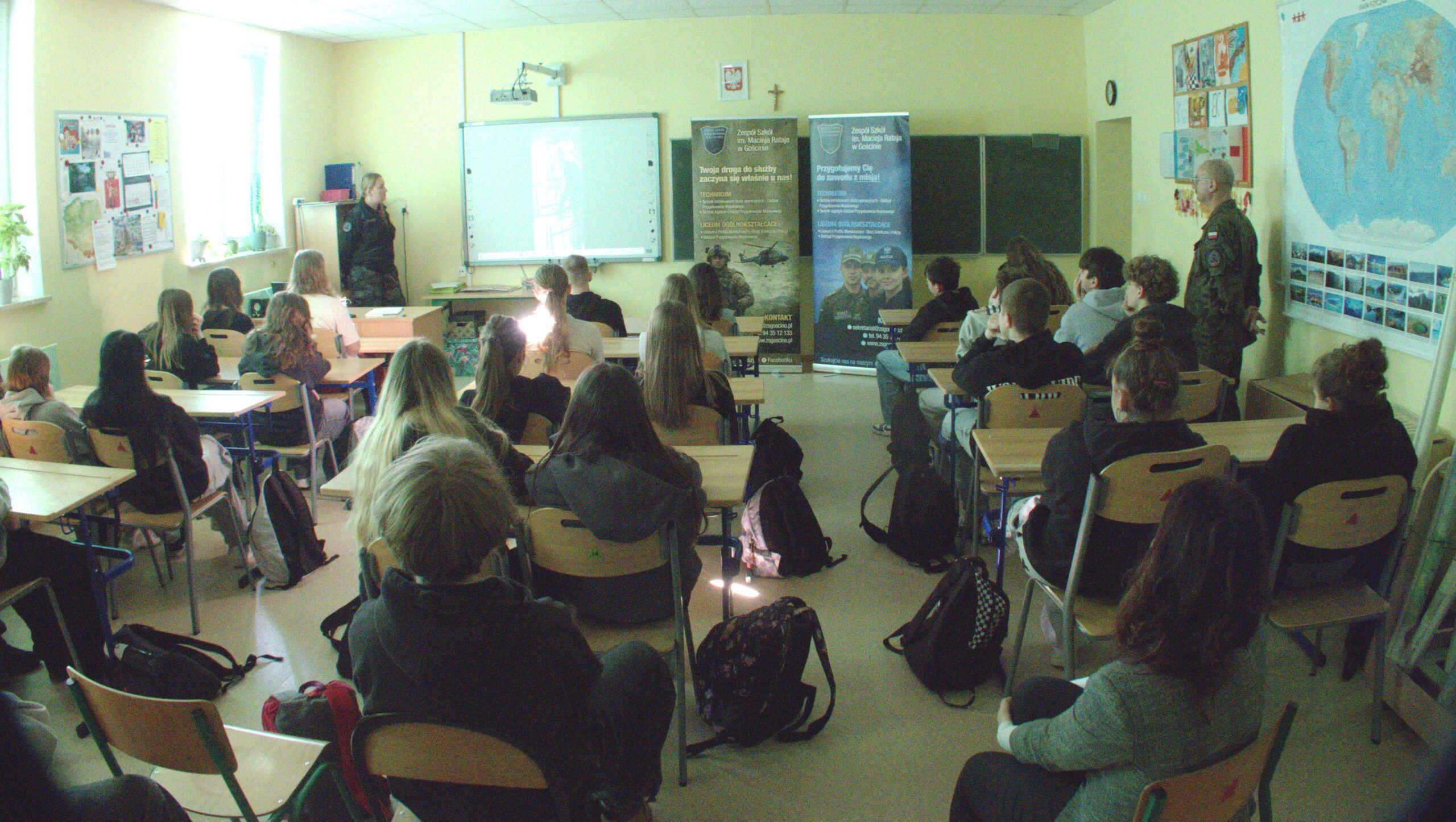 3 marca, w ramach doradztwa zawodowego, uczniowie klas: siódmej i ósmej spotkali tym razem się z przedstawicielami Zespołu Szkół im. M. Rataja w Gościnie ( wcześniej Szkoły Branżowej w Kołobrzegu). Wicedyrektor Szkoły, Pan Waldemar Dołowy i wychowawca internatu, Pani Patrycja Tusznio przedstawili naszym uczniom ofertę szkoły, w której znajdują się różnorodne profile kształcenia w klasach mundurowych. Przedstawili także zasady rekrutacji do szkoły, od nowego roku szkolnego.