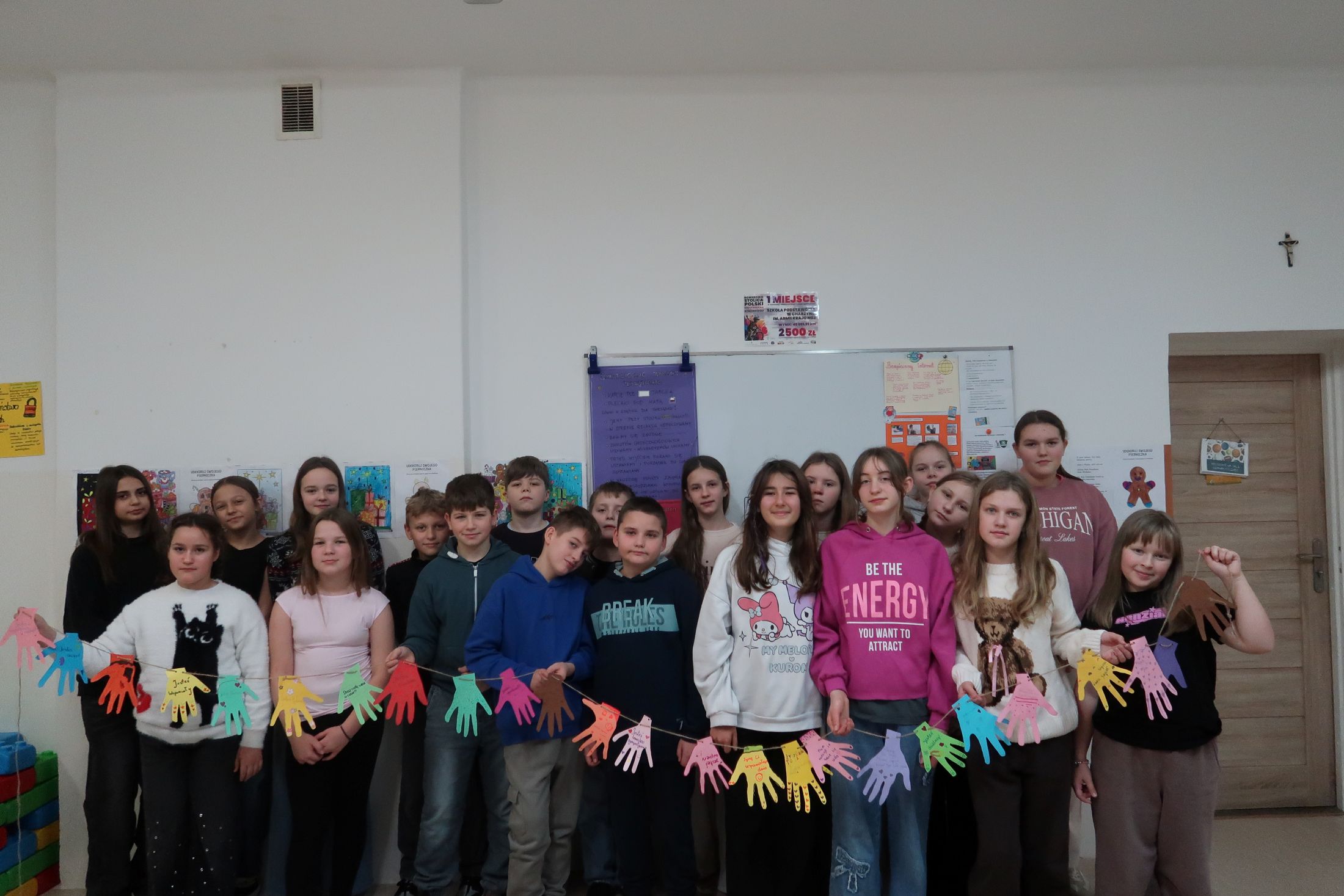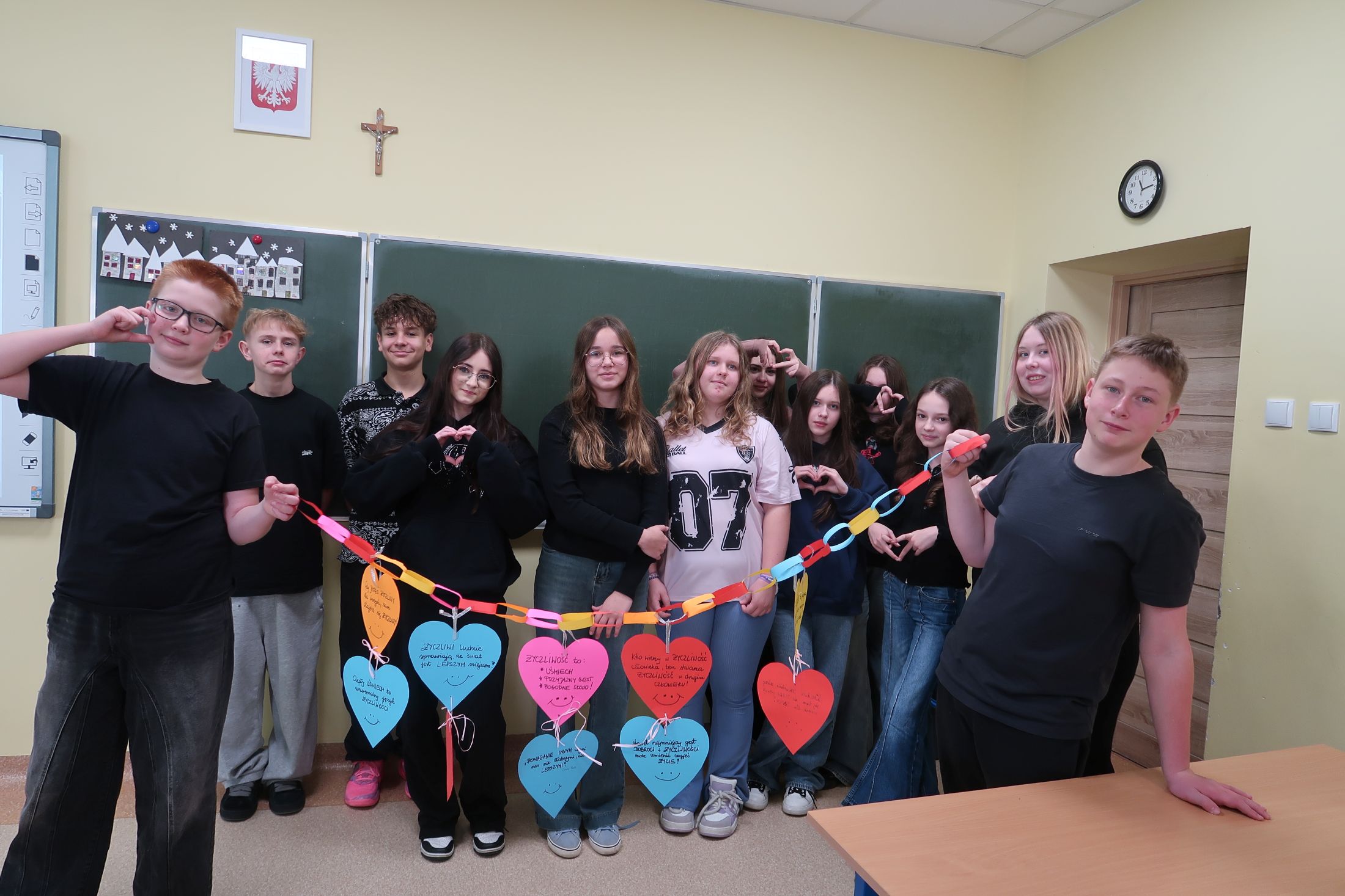Po rozmowach uczniowie stworzyli barwne „łańcuchy życzliwości”, które ozdobiły szkolny hol. Serdeczne podziękowania składamy wychowawcom za wsparcie i zaangażowanie w tę piękną inicjatywę. Niech kolorowe ogniwa przypominają nam każdego dnia, jak wielką moc mają małe gesty dobroci.