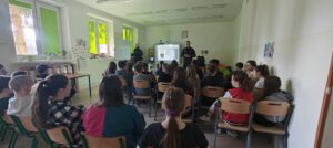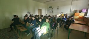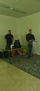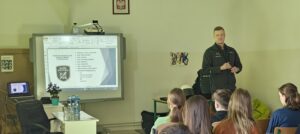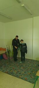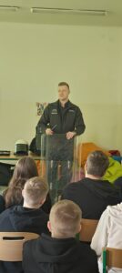 Uczniowie,  w ramach Programu „ W Służbie Prawu” mieli okazję  spotkać się z Funkcjonariuszami Służby Więziennej z Zakładu Karnego w Nowogardzie. Pan por.Maksymilian Pokorski wraz z st.sierż.sztab. Piotrem Kijaną opowiedzieli uczniom  o blaskach i cieniach  swojej pracy, zasadach przyjęcia do służby i strukturze formacji. Pokazali w jakich warunkach mieszkają osadzeni oraz powiedzieli  jak wygląda życie człowieka skazanego, przestrzegając w ten sposób przed łamaniem prawa.  Uczniowie poznali  wiele tajników  pracy służby więziennej, mieli okazje przymierzyć i odczuć na swoim ciele ciężar stroju bojowego funkcjonariusza oraz zaznać nieprzyjemności bycia skutym w kajdanki. To była  lekcja rozszerzająca horyzonty zawodowe naszych uczniów oraz pokazująca  konsekwencje jakie wynikają z łamania prawa.