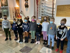Pierwszoklasiści udali się na wycieczkę do kołobrzeskiego Muzeum Oręża Polskiego, gdzie wzięli udział w zajęciach warsztatowych nt. polskich symboli narodowych oraz obejrzeli wystawę „Tak się żyło w czasach PRL-u”. Podczas zajęć uczniowie uczestniczyli w wielu aktywnościach, które kształtowały w nich patriotyczną postawę, poczucie tożsamości narodowej oraz szacunek dla przeszłości jako fundamentu obecnych czasów. Nie zabrakło zabaw z symbolami Polski w tle, takich jak: układanie godła Polski z puzzli, tworzenie żywej flagi, rozwiązywanie zagadek, czy wojskowa musztra.