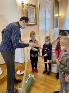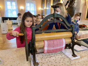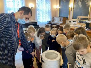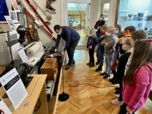 Duże zaciekawienie wzbudziły eksponaty oraz zajęcia praktyczne w ramach wystawy „Tak się żyło w czasach PRL-u”, gdzie uczniowie mogli zobaczyć i przetestować jak działały dawne urządzenia – m.in. 40 letnia pralka Frania, pierwsze telefony stacjonarne, czy domowa prasowalnica.